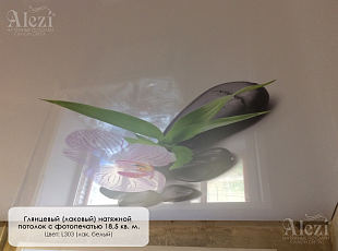 Глянцевый потолок в спальне 14 кв.м с установкой