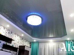 Глянцевый потолок в спальне 12 кв.м с установкой