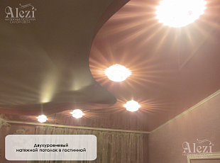Посмотрите фото работ компании Алези по установке натяжных потолков в гостиные нашего города.