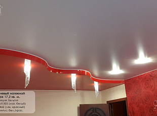 Глянцевый потолок в зале 17 кв.м с установкой