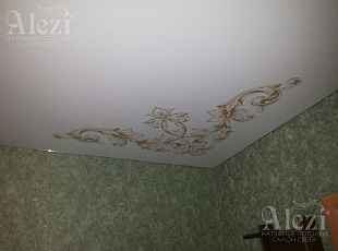 Глянцевый потолок в санузле 4 кв.м с установкой