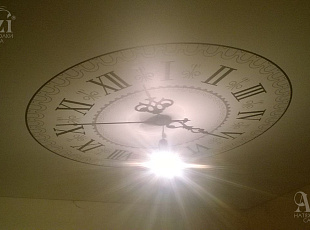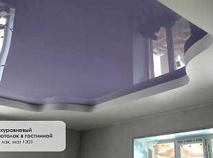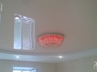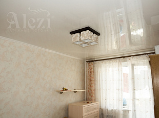 Глянцевый потолок в спальне 14 кв.м с установкой
