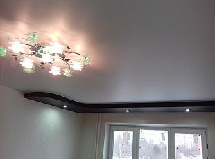 Глянцевый потолок в спальне 12 кв.м с установкой